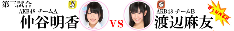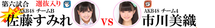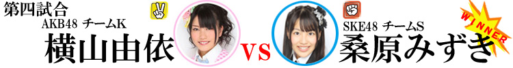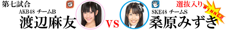 まずは、AKB48チームBすーちゃんこと佐藤すみれが選抜入りを果たした。すーちゃんは、去年のじゃんけん大会でも選抜入りを果たしている。 そして、もう一人の選抜入りメンバーは、名古屋の栄を拠点とするSKE48チームS桑原みずきが選抜入り決定!?ファンの人からは『かつお』という名前で呼ばれている。