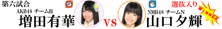 Fブロックから、AKB48 24thシングル選抜メンバー16名の一人に選ばれたのは、大阪難波を拠点とするNMB48のチームN山口夕輝!? そして、もう一人はAKB48最年長の麻里子様こと篠田麻里子が選抜入りを果たした。